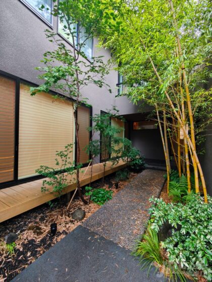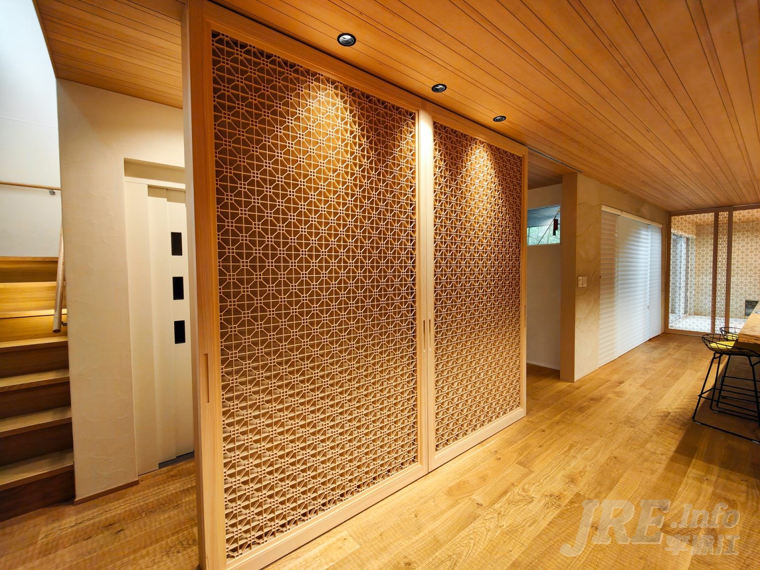 在设施方面,这座住宅配备了太阳能发电系统和家用电梯。此外,厨房设有大容量的食品储藏间,非常方便。同时,入口处有一个宽敞的玄关,与竹林环绕,营造出优雅而宁静的氛围。住宅内部还特意设有暖炉,营造出温暖的居住空间。