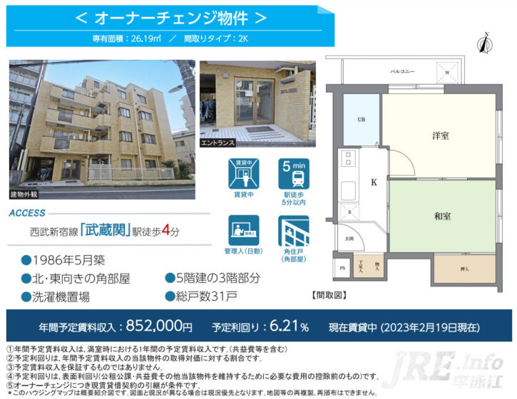 练马区新宿直达带租2K投资物件