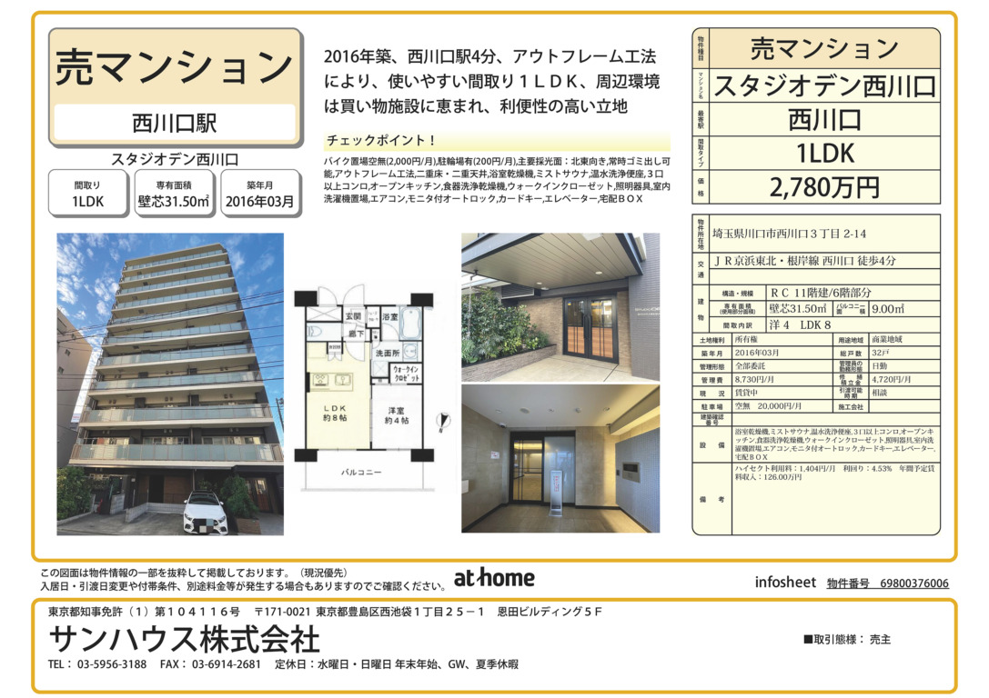埼玉县人气西川口16年浅筑带租投资