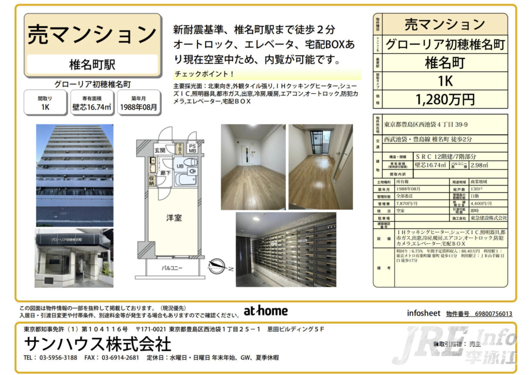 丰岛区椎名町新耐震物件,商业地域高土地价值,130户超大公寓。空室中随时可看,投资自住皆宜。