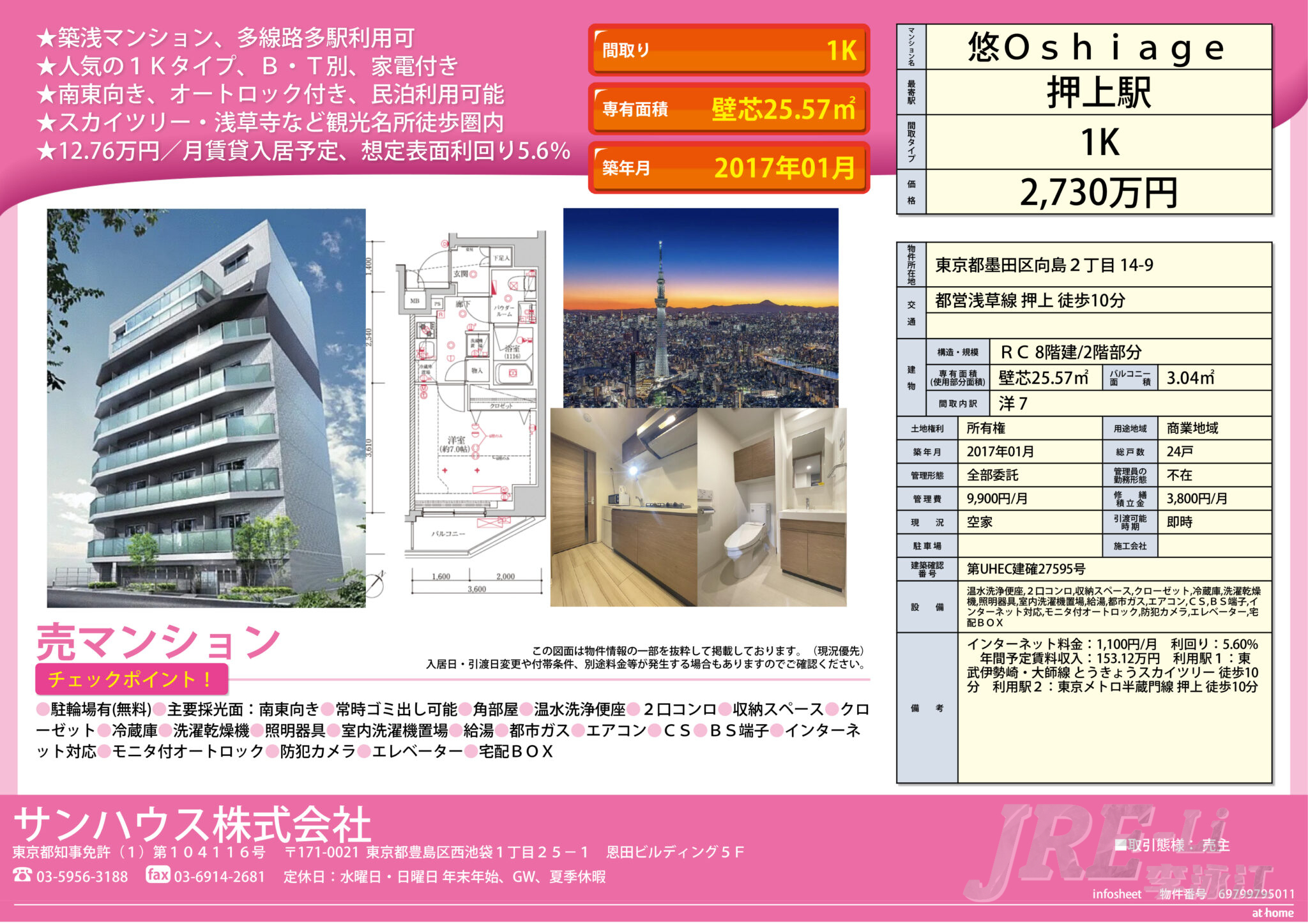 2017年建成的这栋位于押上的房产距离天空树仅徒步8分钟,而且是少有的可以用作民宿(也称为“民泊”)的物业,极具投资价值。带租出售更安心,多户型先到先得。