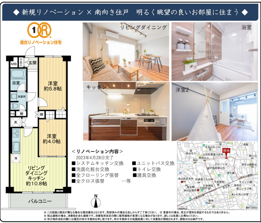 全面新装修、卫浴分离、温水洗净便座、洗衣机放置