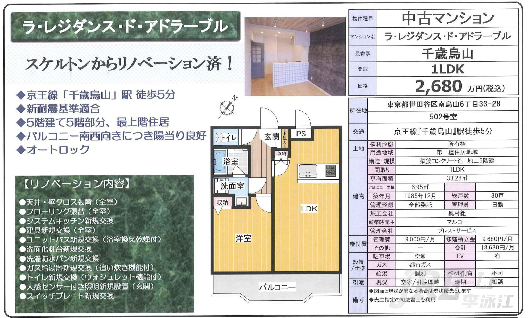 世田谷区千岁鸟山1LDK精装修公寓