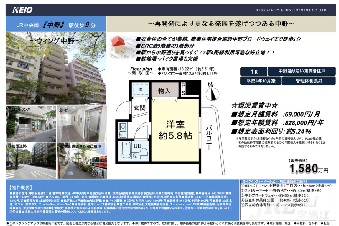 中野区中野带租投资公寓