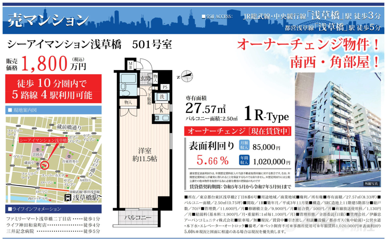 台东区浅草桥带租投资物件