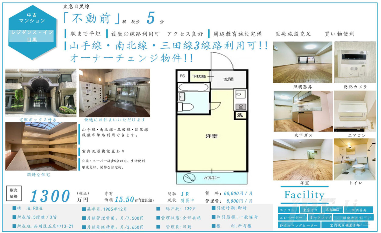 東急目黒線 / 不動前駅 徒歩5分