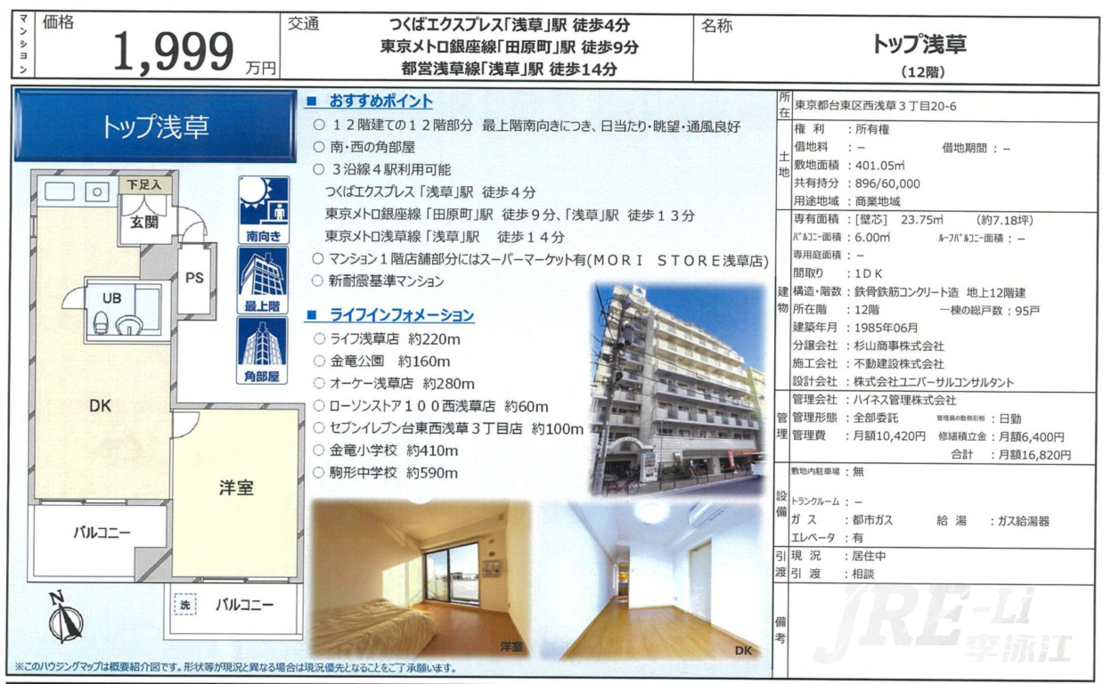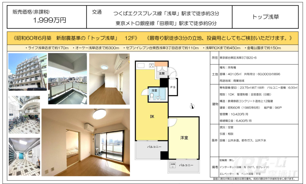 東京メトロ銀座線 / 田原町駅 徒歩9分