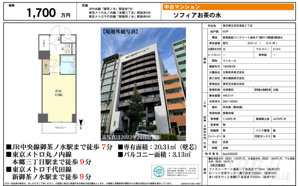 東京メトロ丸ノ内線 / 御茶ノ水駅 徒歩6分