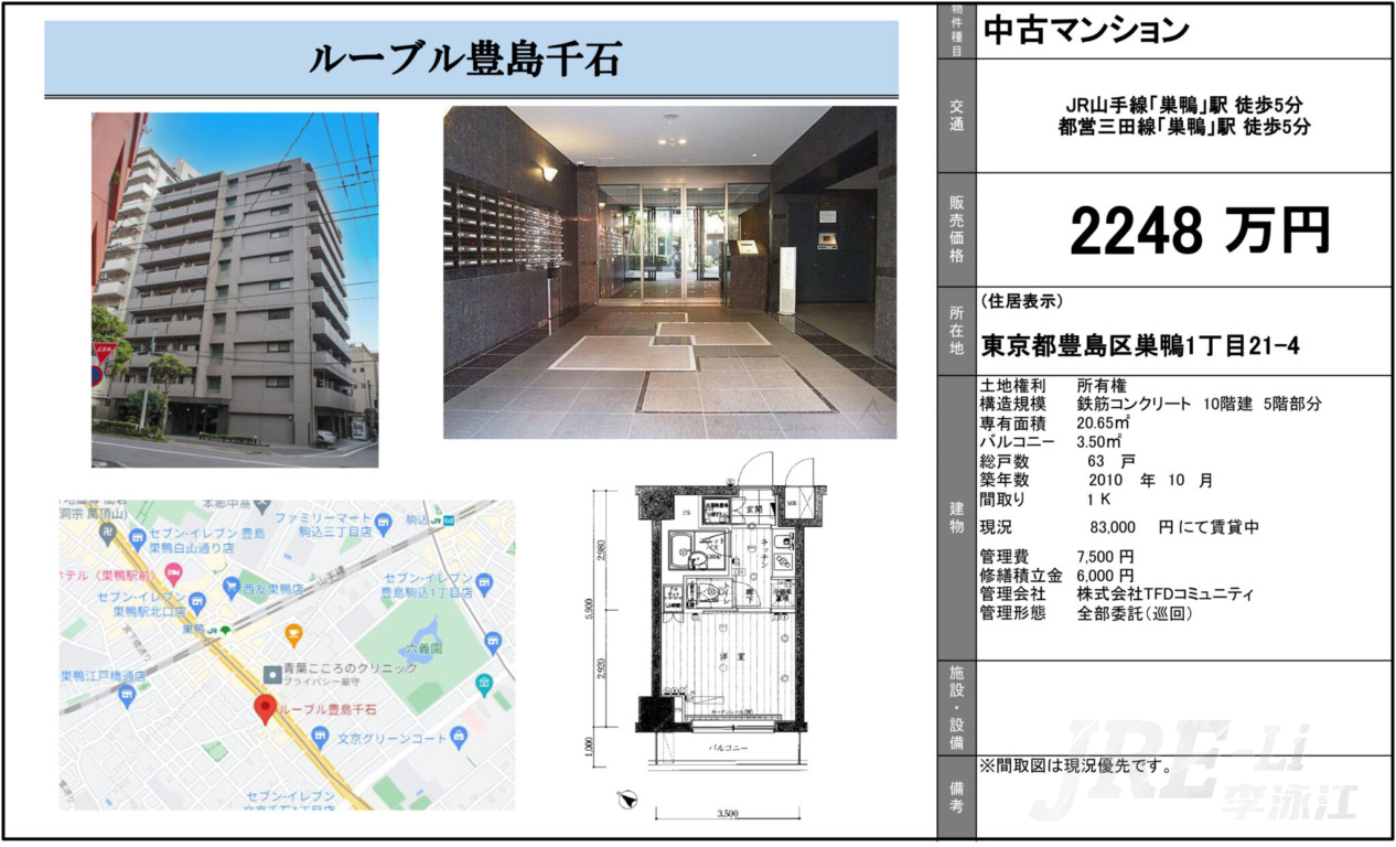 丰岛区山手线巢鸭2010年带租投资