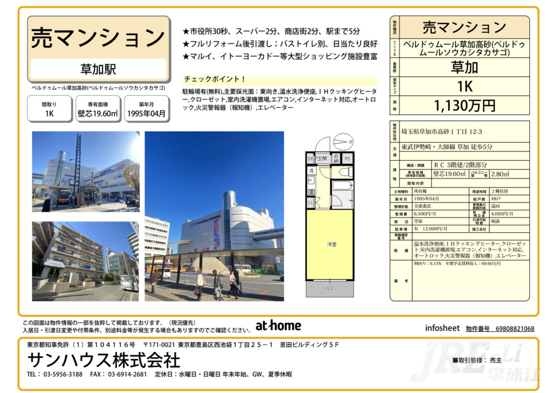 埼玉县草加市全新装修投资自住公寓