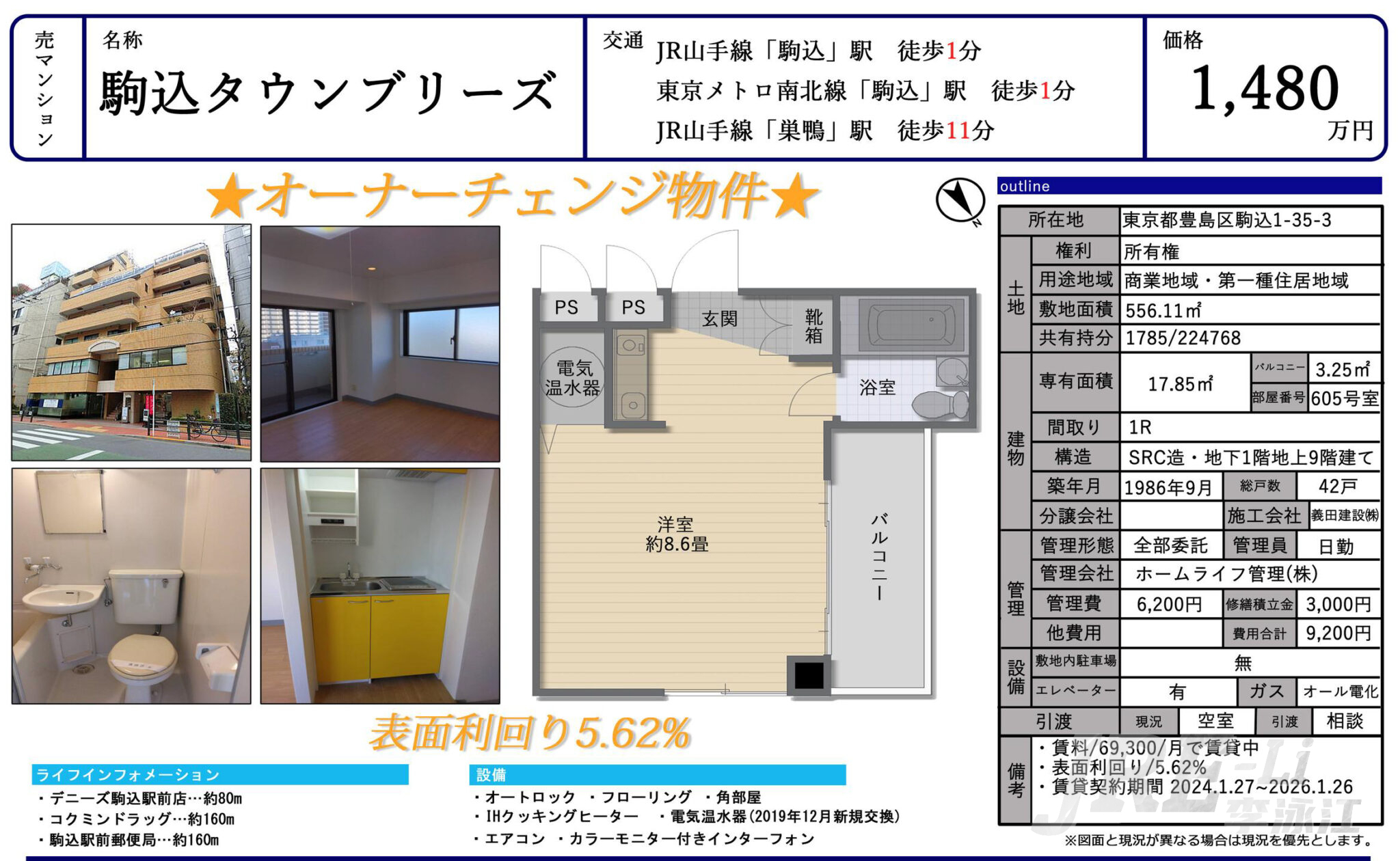 丰岛区山手线駒込徒步1分带租投资