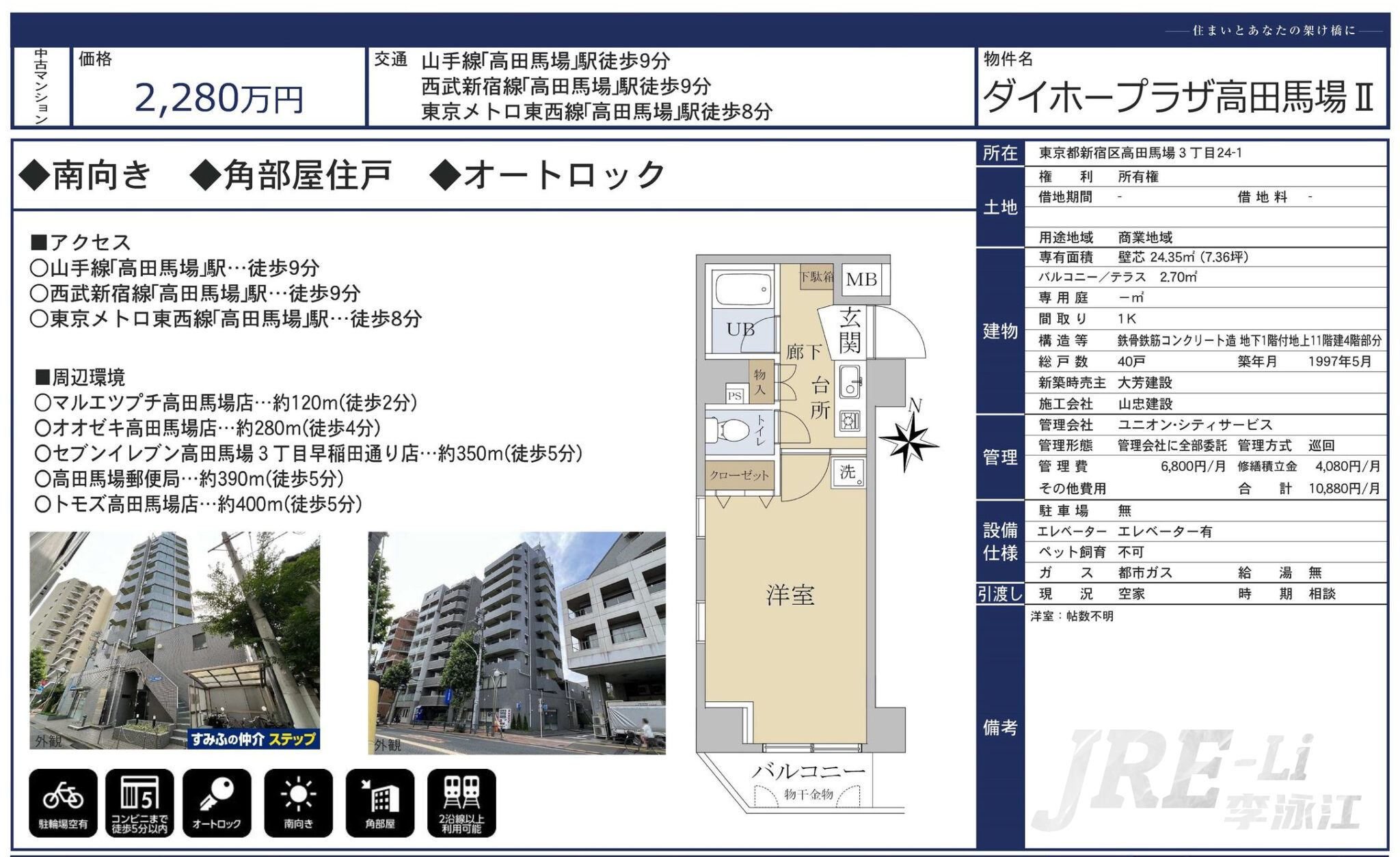 新宿区人气山手线高田马场投资自住公寓