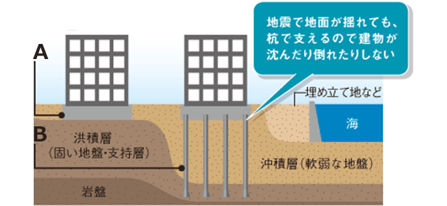 建造塔楼和其他大型建筑时,往往需要进行地基改良以减少灾害风险。例如,东京湾内的豊洲站,有明,新木场站等都建在经过地基改良的填海造地上。